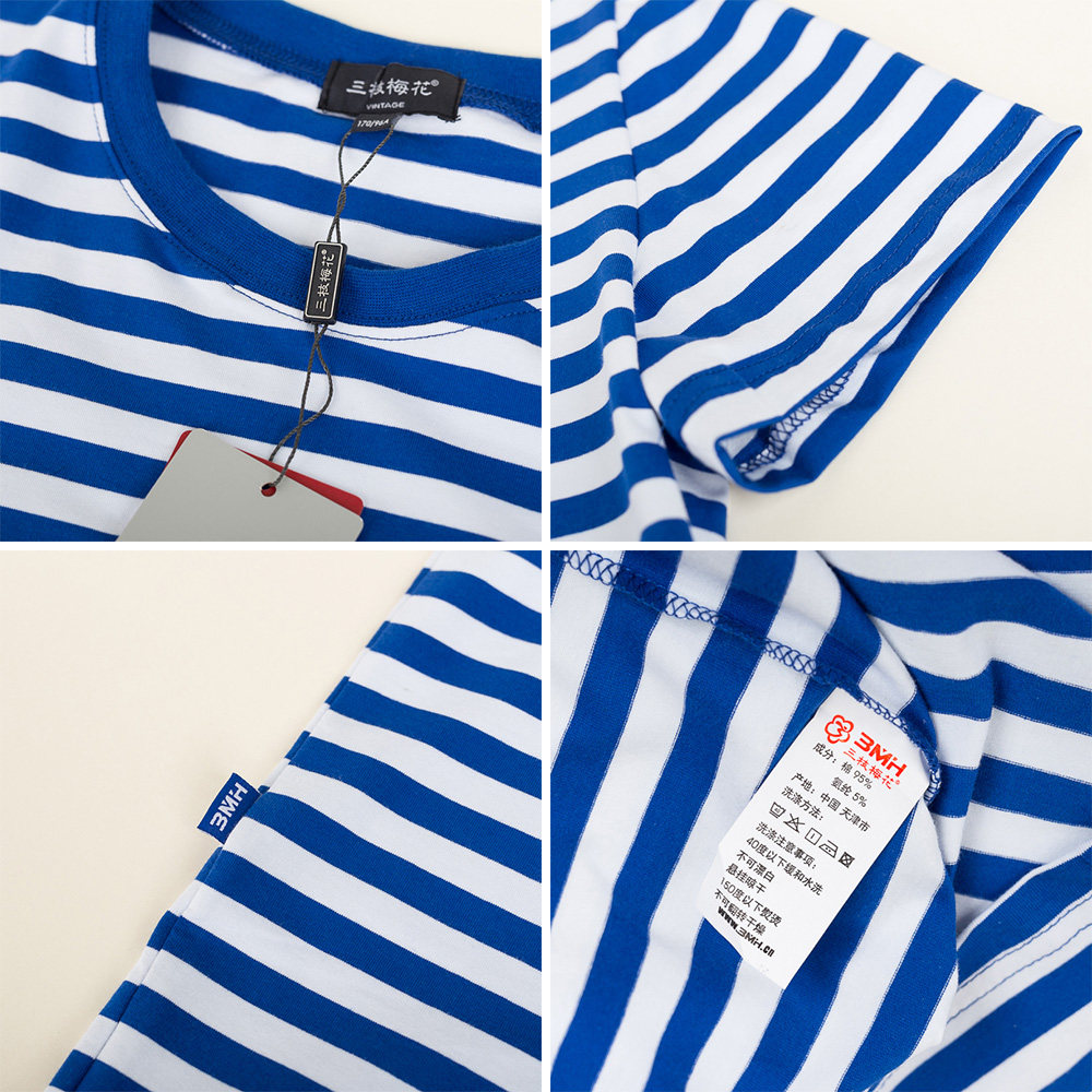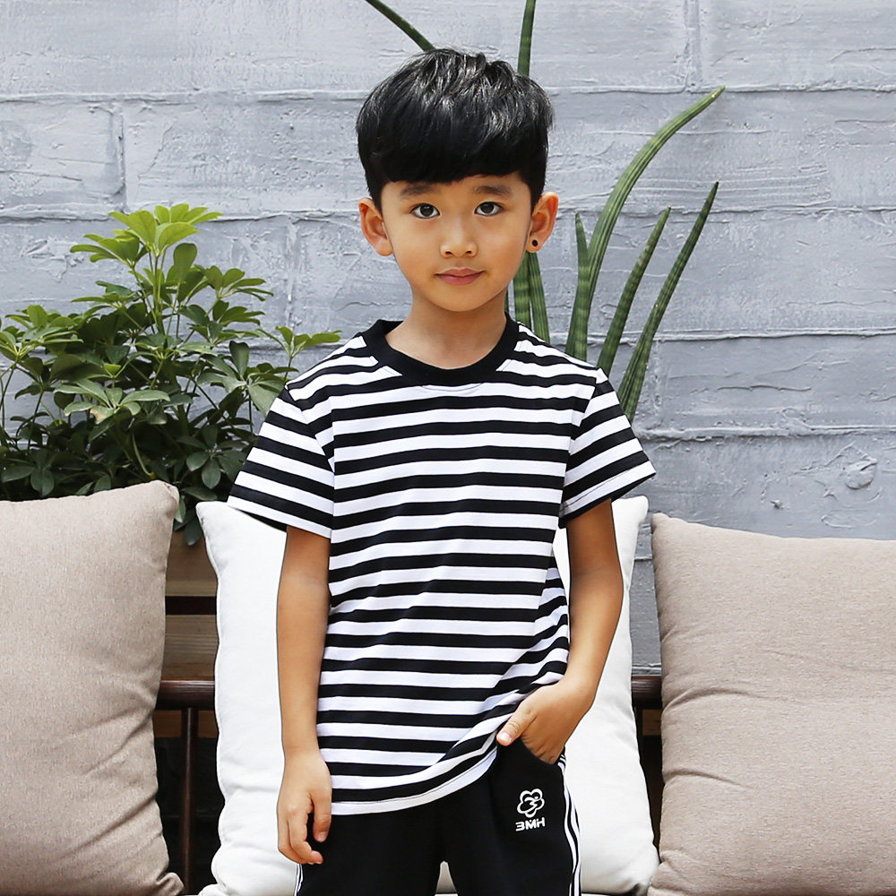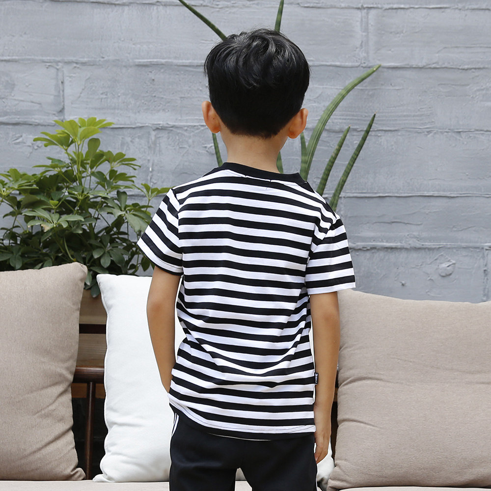 Three branches plum brand boys and girls short sleeves T-shirt for children with striped children sports T-shirt summer new parent-child wear