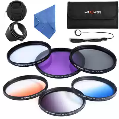 62 67mm UV CPL FLD gradient Orange blue gray flower cover in the middle pinch blue cloth anti-lost rope 6 small bag