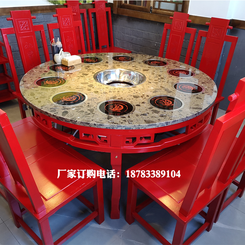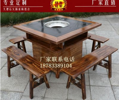 Marble Hot Pot Table And Chairs Battery Furnace Liquefied Gas Restaurant Solid Wood Cabinet Hot Pot Table And Chairs-Taobao