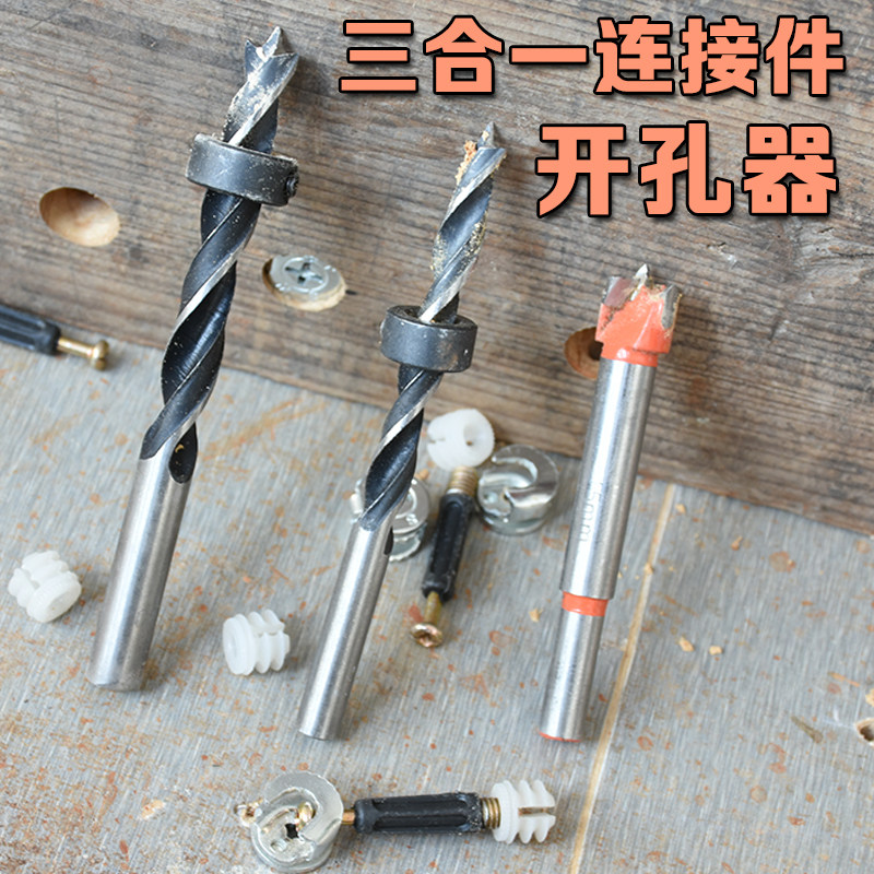 Three-in-one connector Woodworking drill bit set Eccentric wheel 15mm8mm10mm Tricuspid drill bit