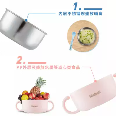 Richell children's stainless steel insulated bowl Baby food bowl Tableware artifact Baby bowl spoon set