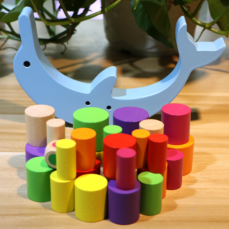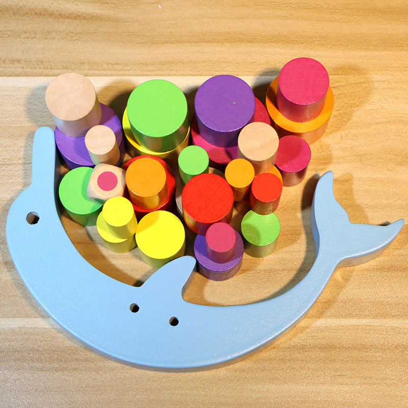 Wooden large dolphins balance building blocks toy game game stack music hands - on capacity stack tower 234