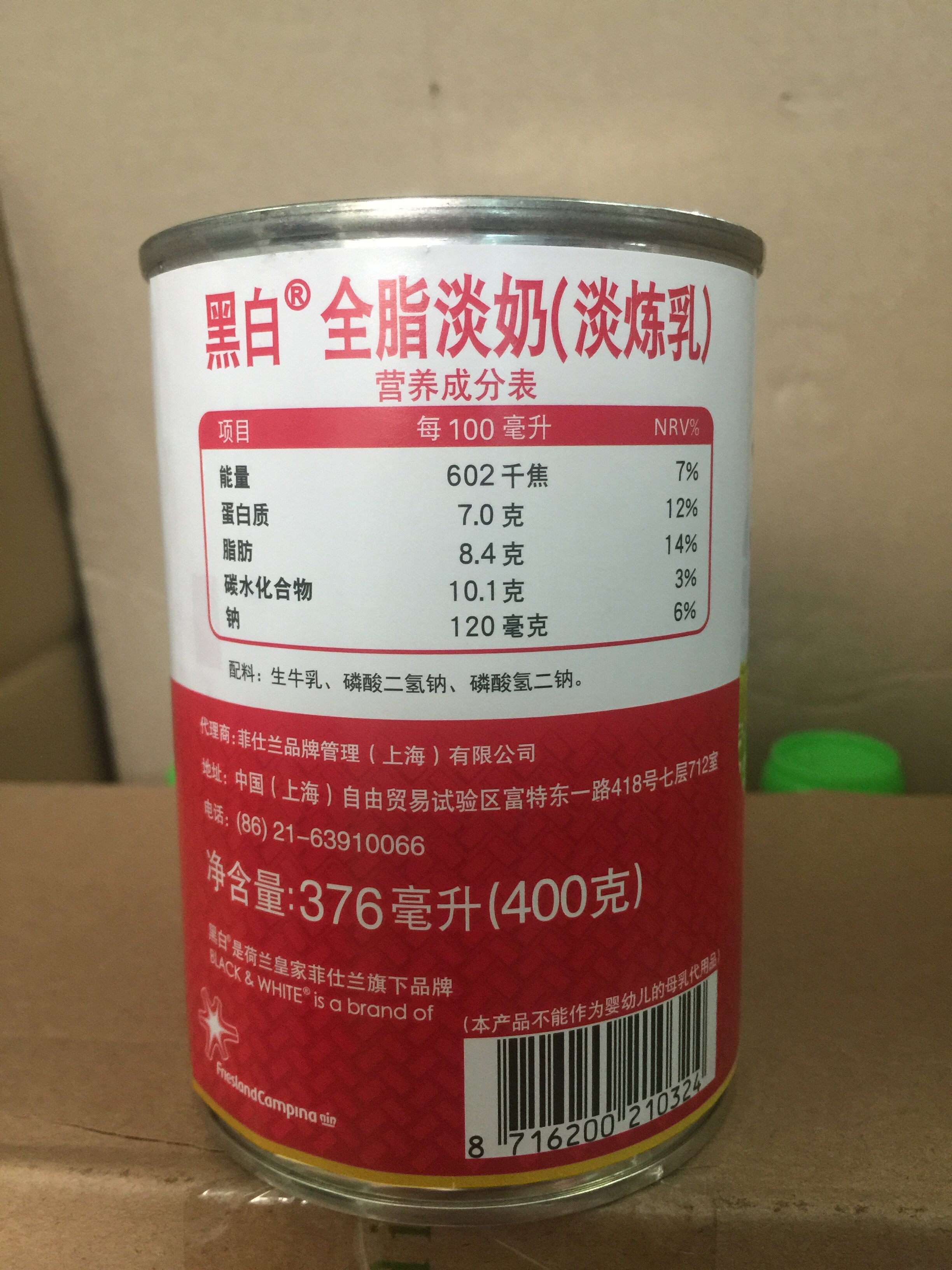 Holland black and white evaporated milk whole box 400g * 48 cans small package full fat evaporated milk condensed milk cake milk tea shop