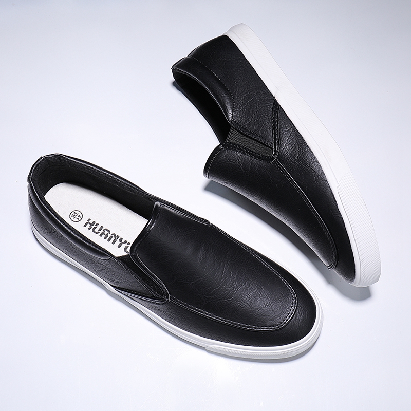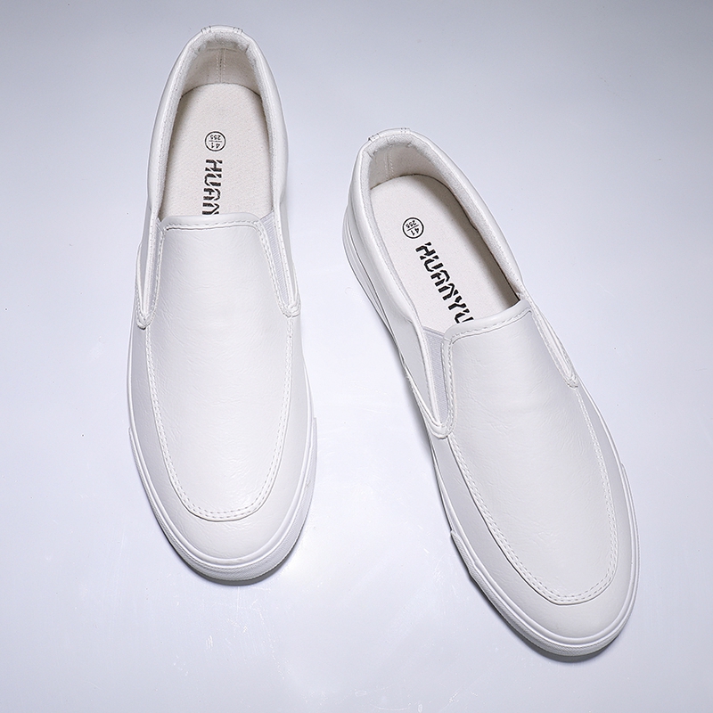 Autumn new shoes men's Korean version of low-top skateboard shoes men's small white shoes youth leather slip-on casual leather shoes men