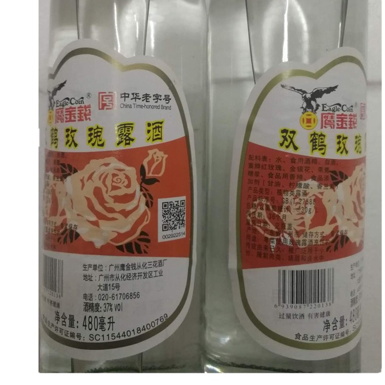 2 Bottled Guangzhou Eagle Money Double Crane Rose Dew 480ml 37-degree Splendid Fragrant Fork Roast Meat