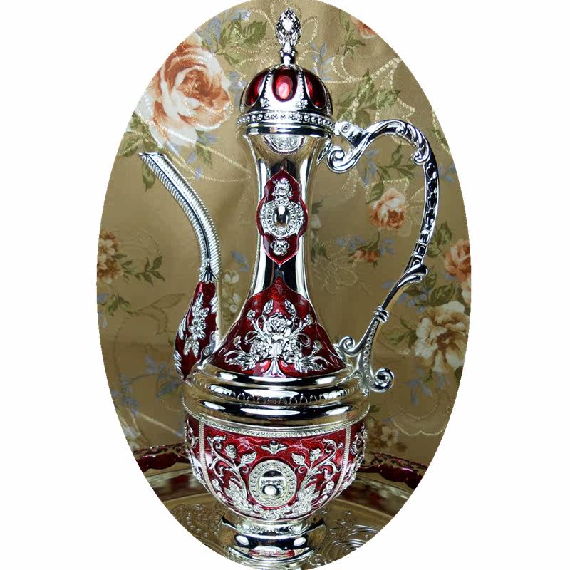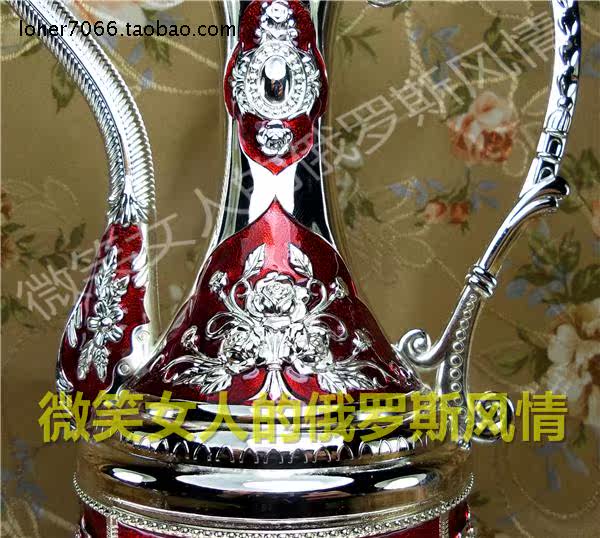 New 3 Russian tin-made metal round wine jug silver red rose flower capacity 9 Two 450 ml Yazuostyle