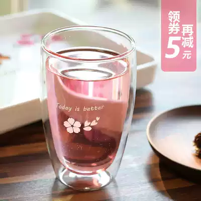 Double-layer glass cold water cup Household tea cup Coffee cup Office female insulation and heat-resistant cup