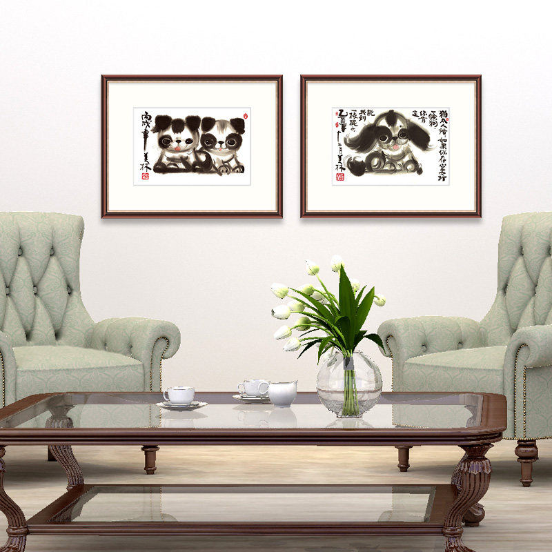 World home Korean Meilin calligraphy and painting original prints of the Year of the Dog zodiac animal painting dog Chinese painting living room porch hanging painting