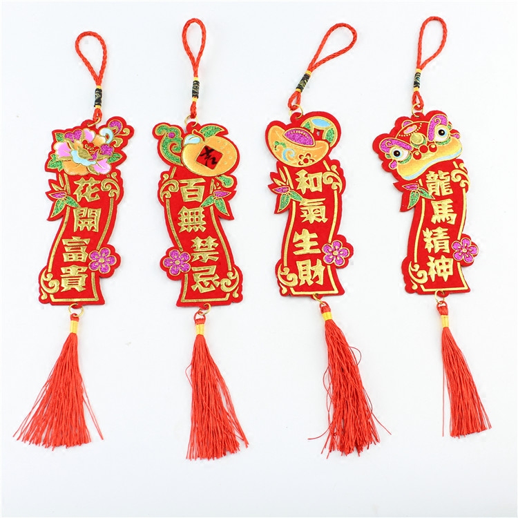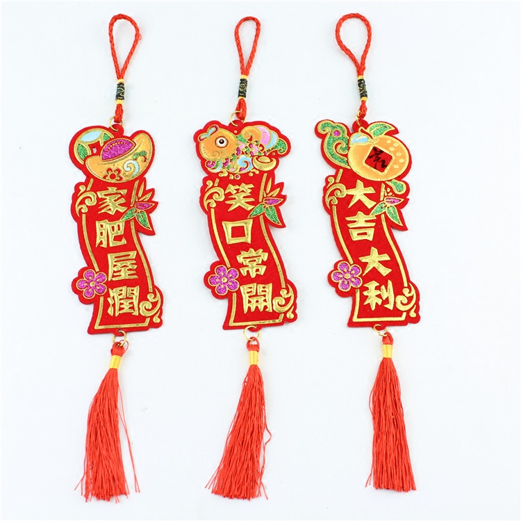 New Year's Spring Festival pendant car interior ornaments Chinese New Year decoration double-sided gold powder bronzing small pendant Spring Festival traditional small gift