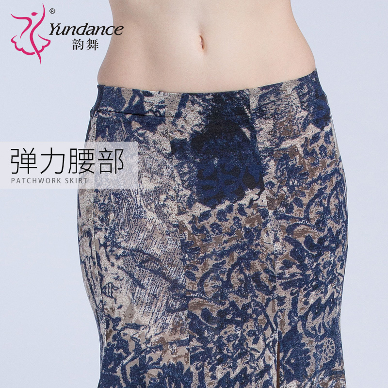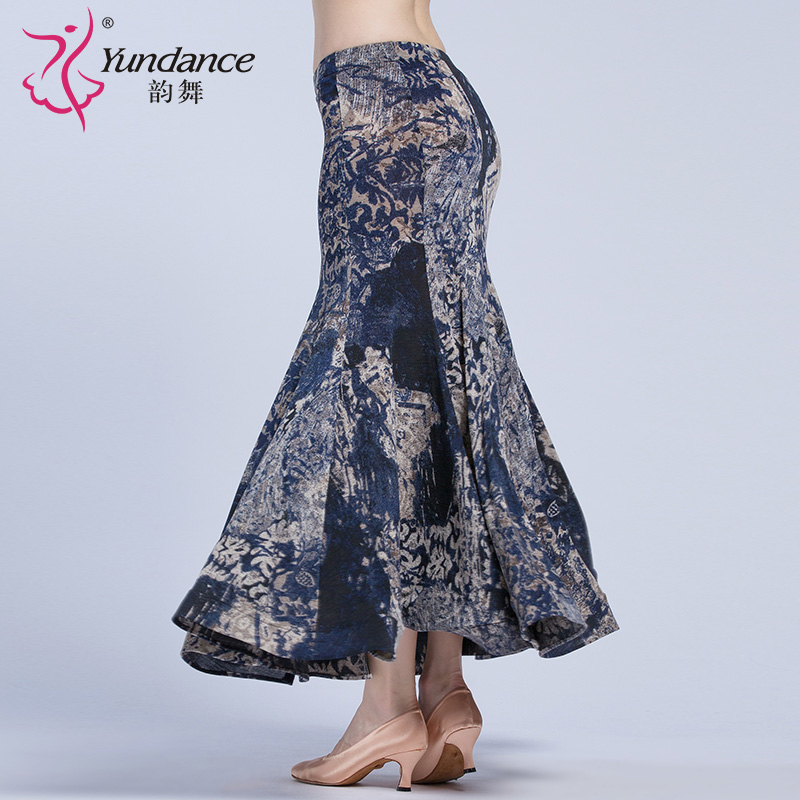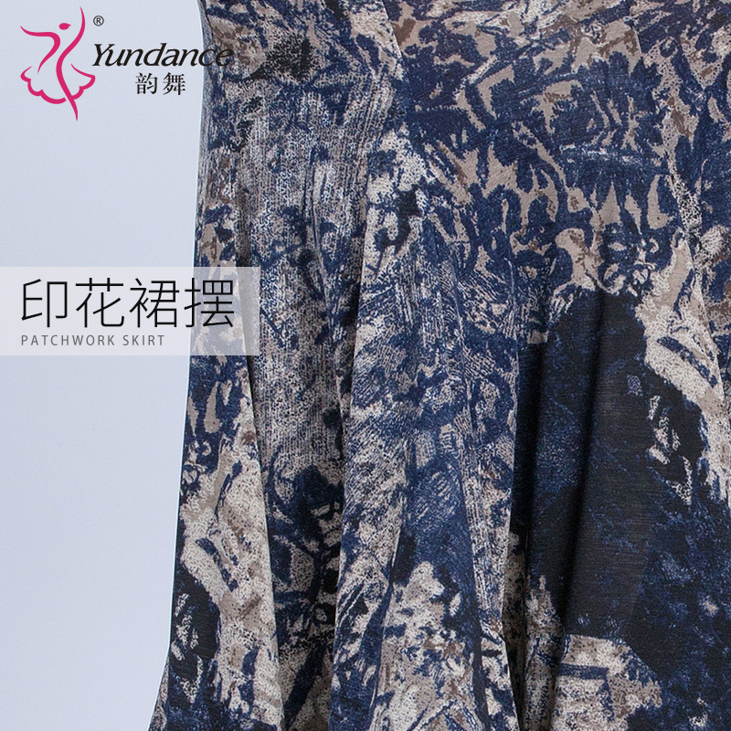 Rhyme dance modern dance practice dress Printed women's practice dress High split large swing adult slim national standard social dance dress