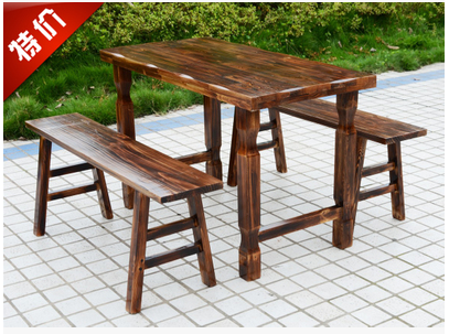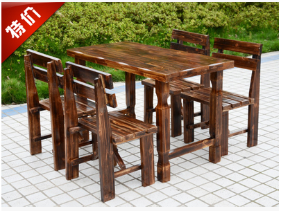 Solid Wood Carbonated Outdoor Bar Courtyard Hotel Coffee Table And Chairs Combination Kit Casual