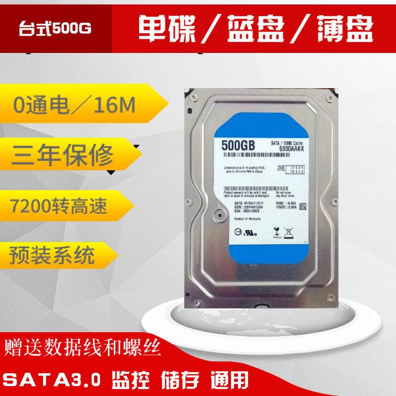 500G mechanical hard disc 7200 turn SATA serial port single disc blue disc thin disc desktop monitoring special