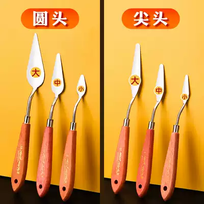 Stainless steel oil painting scraper gouache paint palette knife special-shaped picking knife oil painting stick blade round head texture knife pointed beech wood Wood acrylic painting large size knife flat sculpture shaping knife