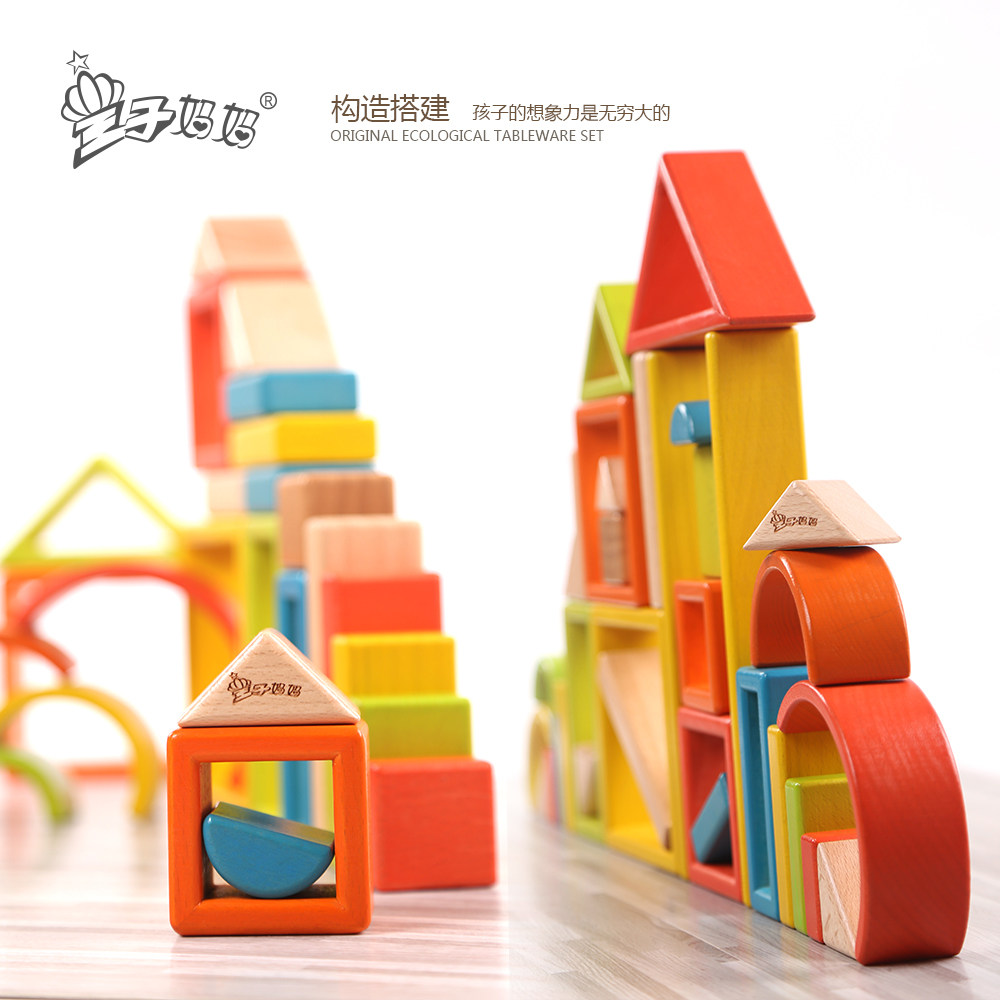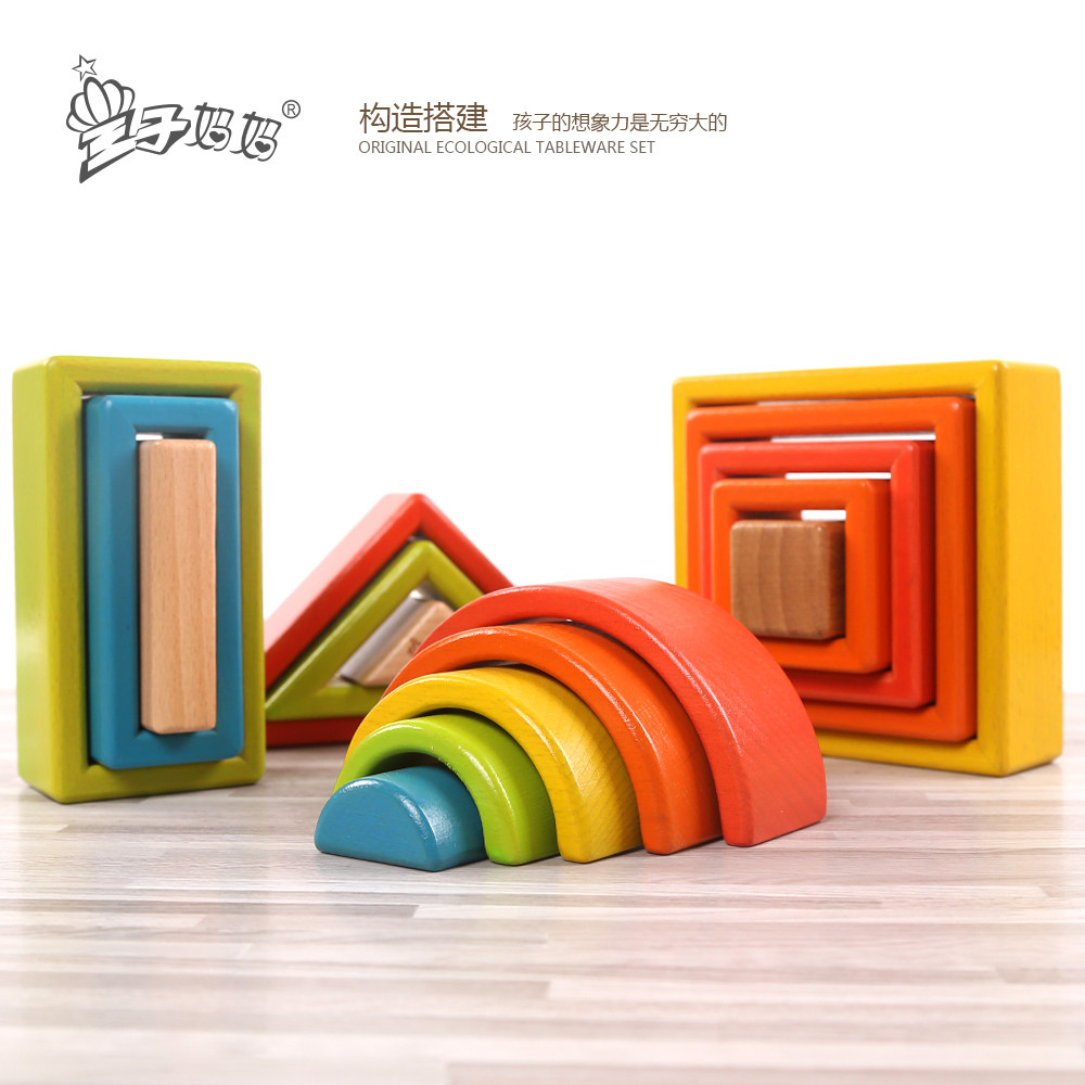 Prince's mother imported beech large chunks of rainbow building Rainbow Building Children Puzzle Early Childhood Toys 123