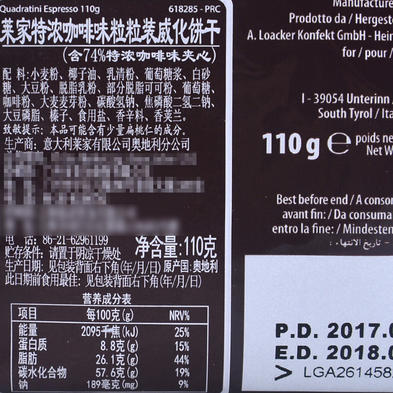 Italy imported Loacker Laijia wafer biscuits hazelnut chocolate sandwich biscuits shoulder bag snacks