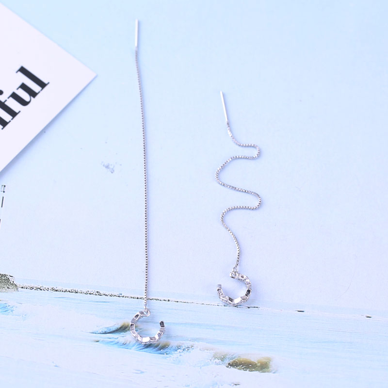 S925 Silver Flash Drilling Wave Wire Woman Korean temperament long - version stream Su earrings personality ear in the same model