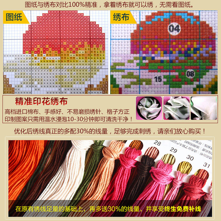 Send movement full embroidery 3-strand embroidery cotton line 50x40 cm (precise clear printing) Send a full set of tools Send movement full embroidery grid 3-strand embroidery wire 50x40 cm (precision definition)