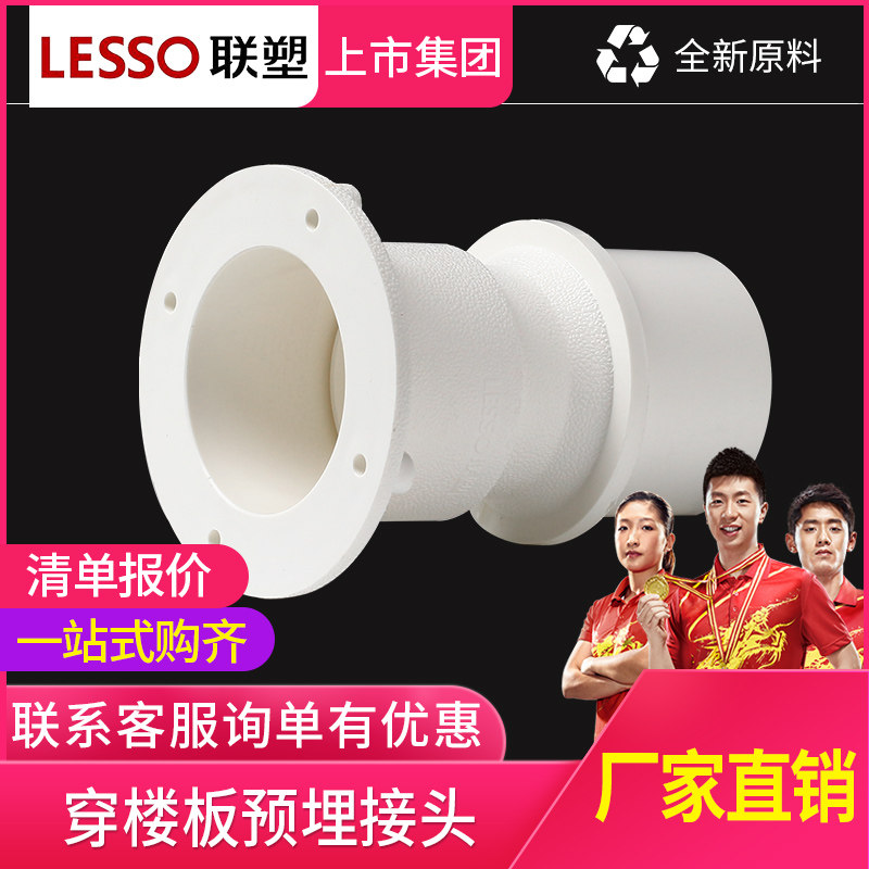 LESSO Liansu PVC drainage pipe through the floor embedded joint 50 75 110mm pipe fittings Pipe fittings