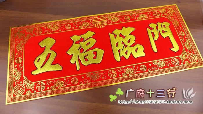 Five Fufu Linmen to cross the New Year's Praying for Lunar New Year's Lunar New Year Painting with a suede cloth bronzing gold gate to the Spring Festival