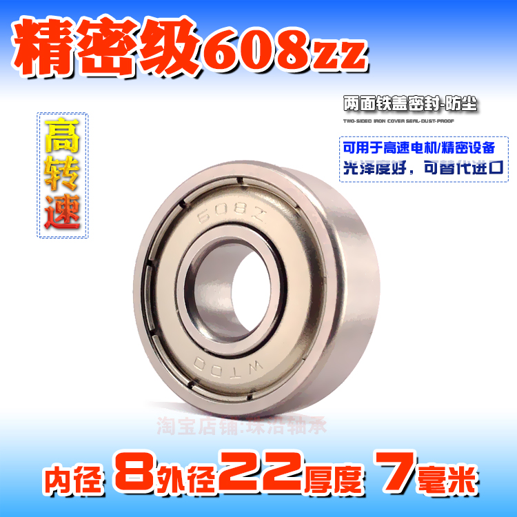 608ZZ(8*22*7 mm)608Z(8*22*7 mm)Motor grade 608ZZ(8*22*7 mm)Precision grade 608ZZ(8*8*7 mm)