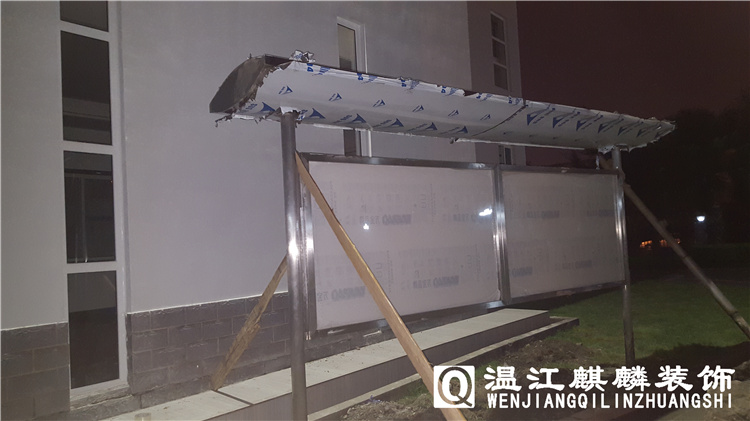 Customized outdoor stainless steel roof advertising bulletin board post bar vertical double-sided opening waterproof window with canopy