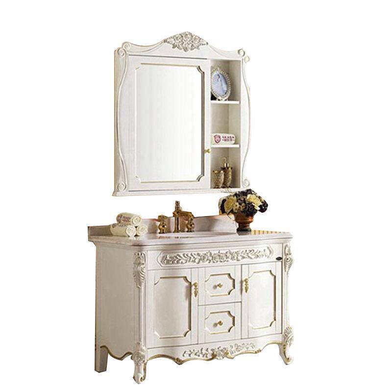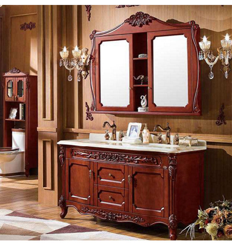 Eurostyle Red Oak Wood Bath Cabinet Antique Solid Wood Bath Cabinet Mirror Cabinet Floor Marble Wash Stand Washbasin Cabinet