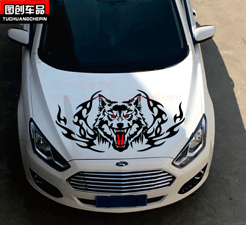 New Car Decoration Head Cover Personality Wolves Totenra Flower Handpiece Cover Wolf Head Bully Fashion Change Loading Stickers