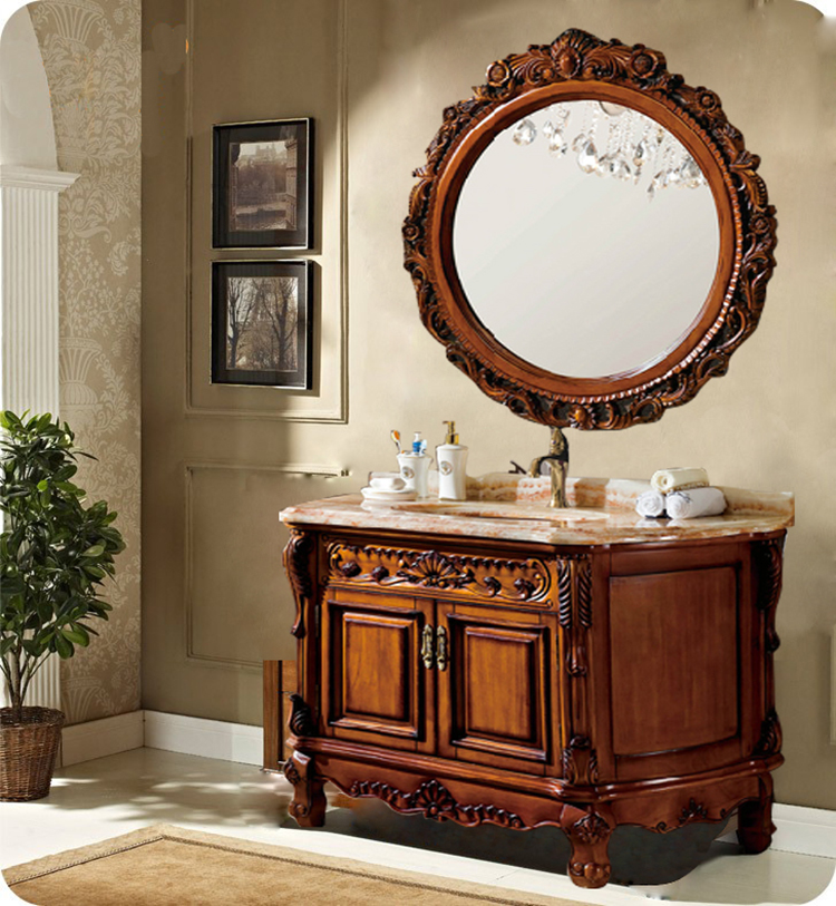 Eurostyle Red Oak Wood Imitation Ancient Carved Flower Bath Cabinet Ground Solid Wood Bathroom Cabinet Toilet Sanitary Ware Wash Wash Basin Cabinet-Taobao