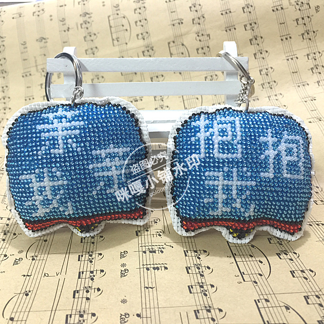 Miga cross stitch bead embroidery small pendant kit key ring double-sided embroidery Doraemon kiss me hug me