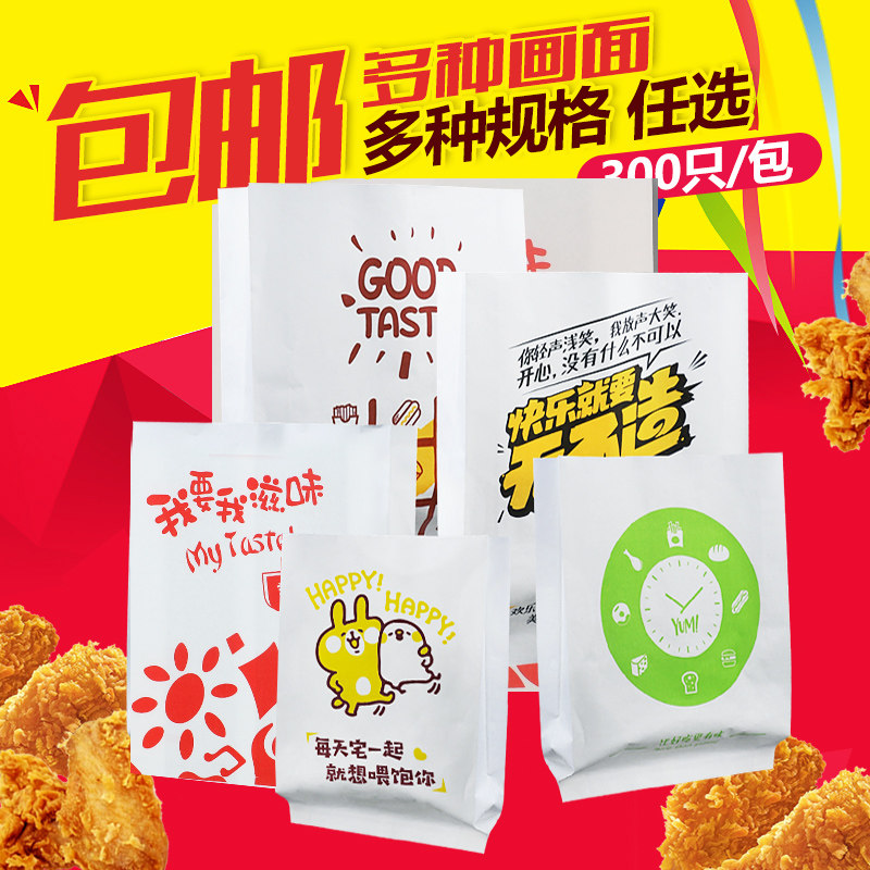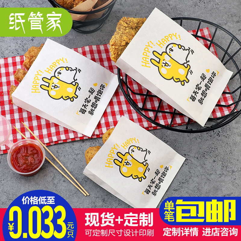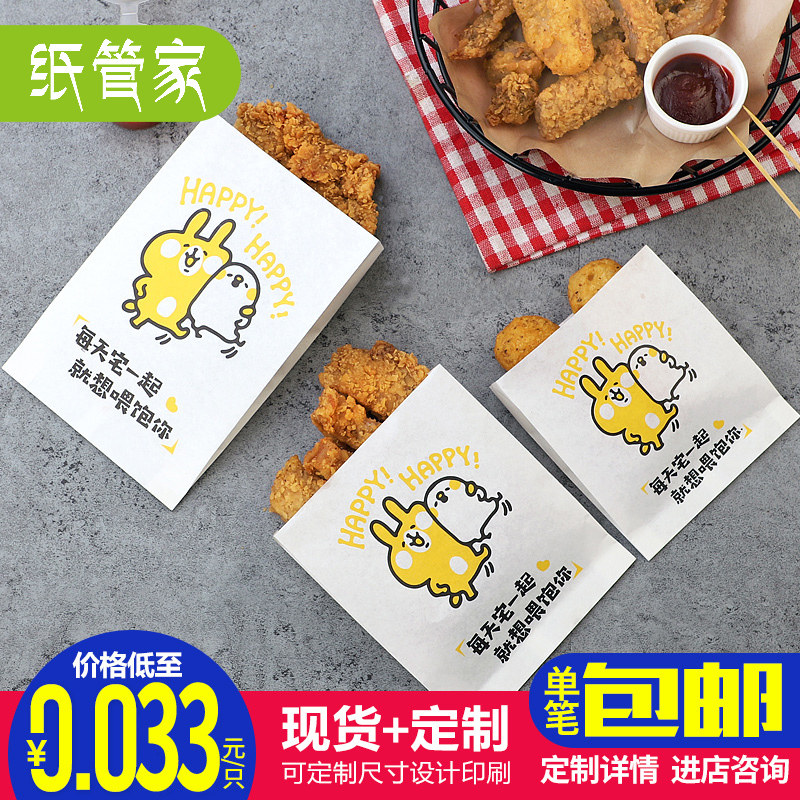 Chicken Platoon Paper Bag Anti-Oil Paper Bag Disposable Snack Bag Fries Chicken Wicker Chicken Wings Chicken Rice Flower Food Packing Bag Custom