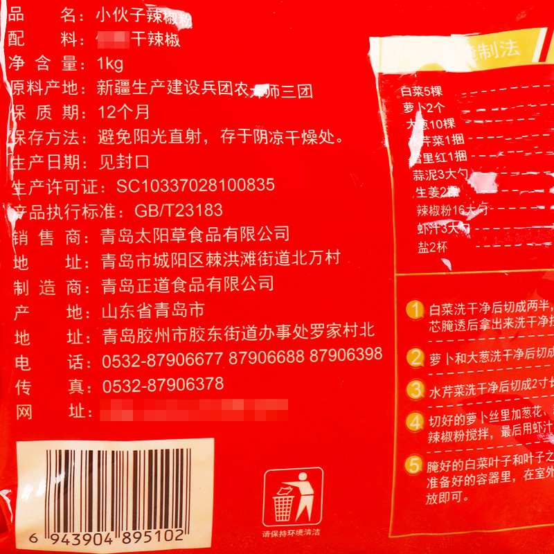 High quality dry chili pepper etc. The actual information of product outer packaging is prevailing
