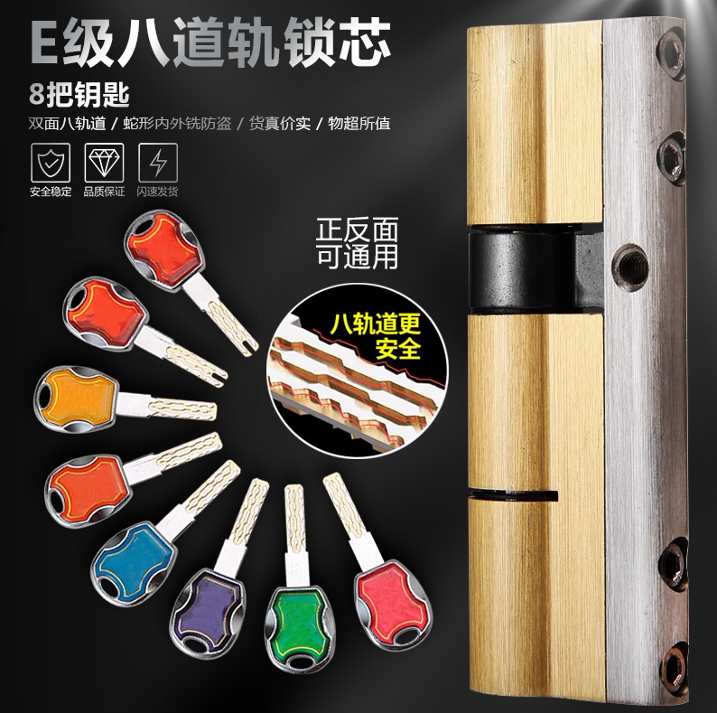 (8 tracks)Lock core anti-tin and anti-riot super C-class anti-theft door lock core All copper blade universal super E-class lock