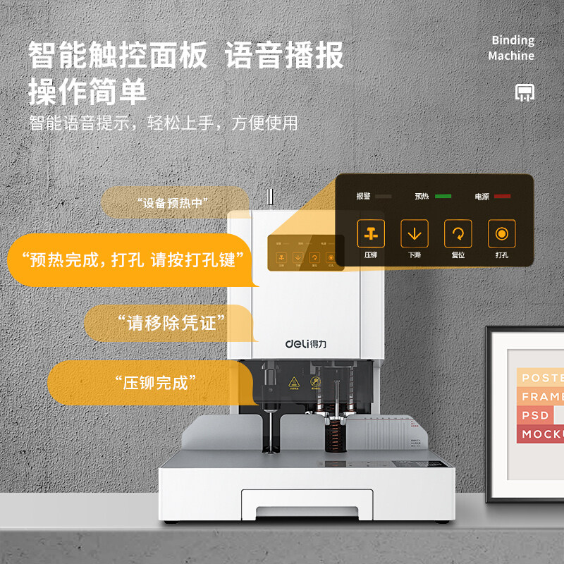 Deli 14601 voucher binding machine automatic financial accounting electric punching hot melt hose office bid document file file 14608 manual loading line small rivet tube nailing machine