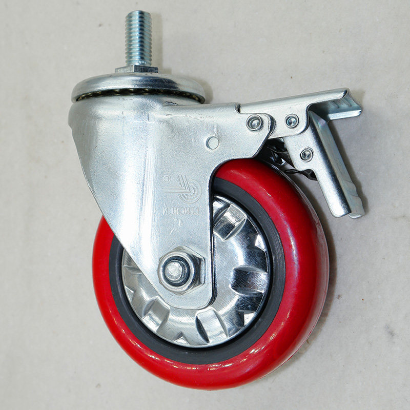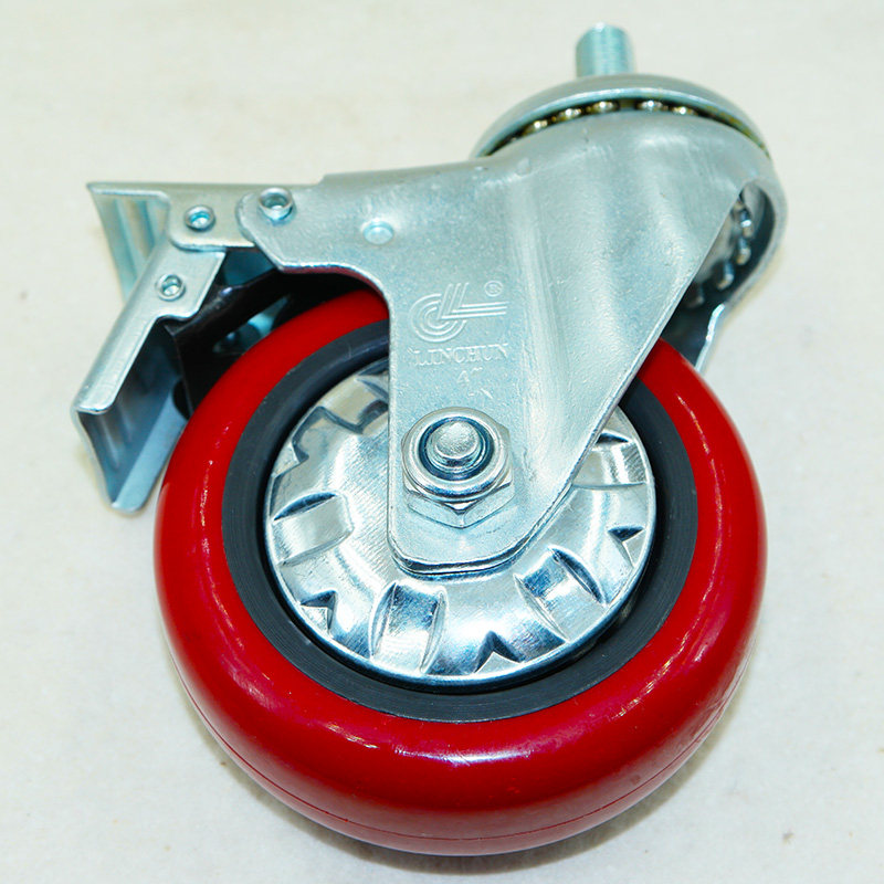 Lin Spring Castors 2 Series Medium-sized Arc Red PU Wheels 4 Inch Wire Rod Universal Wheel Brake Wheel Muted Trolley Wheel