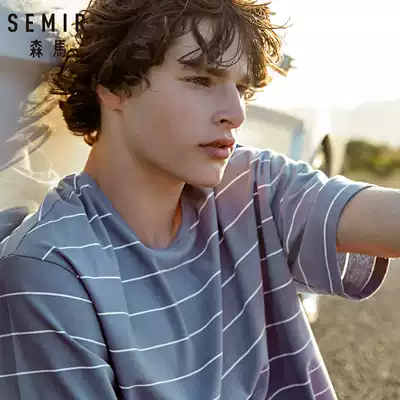 Senma official flagship store men's short-sleeved T-shirt men's loose horizontal stripes spring and summer bottoming shirt Korean boys T-shirt