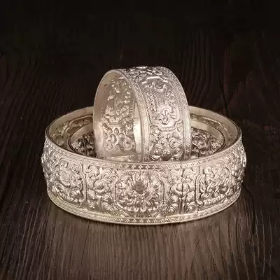 Nepal eight auspicious semi-handmade Manza plate sterling silver repair Manda pan Mandarin Mandarin without tray 8cm