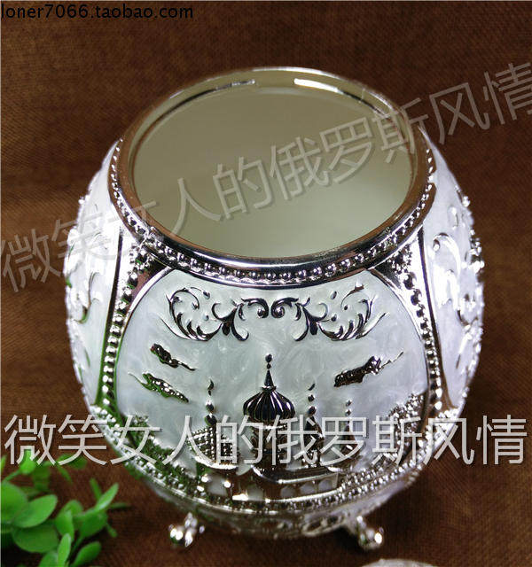 Special price RW Russia tin metal tea barrel Barrel Tank Four Feet Egg Shape Silver White Color Castle Rose Big