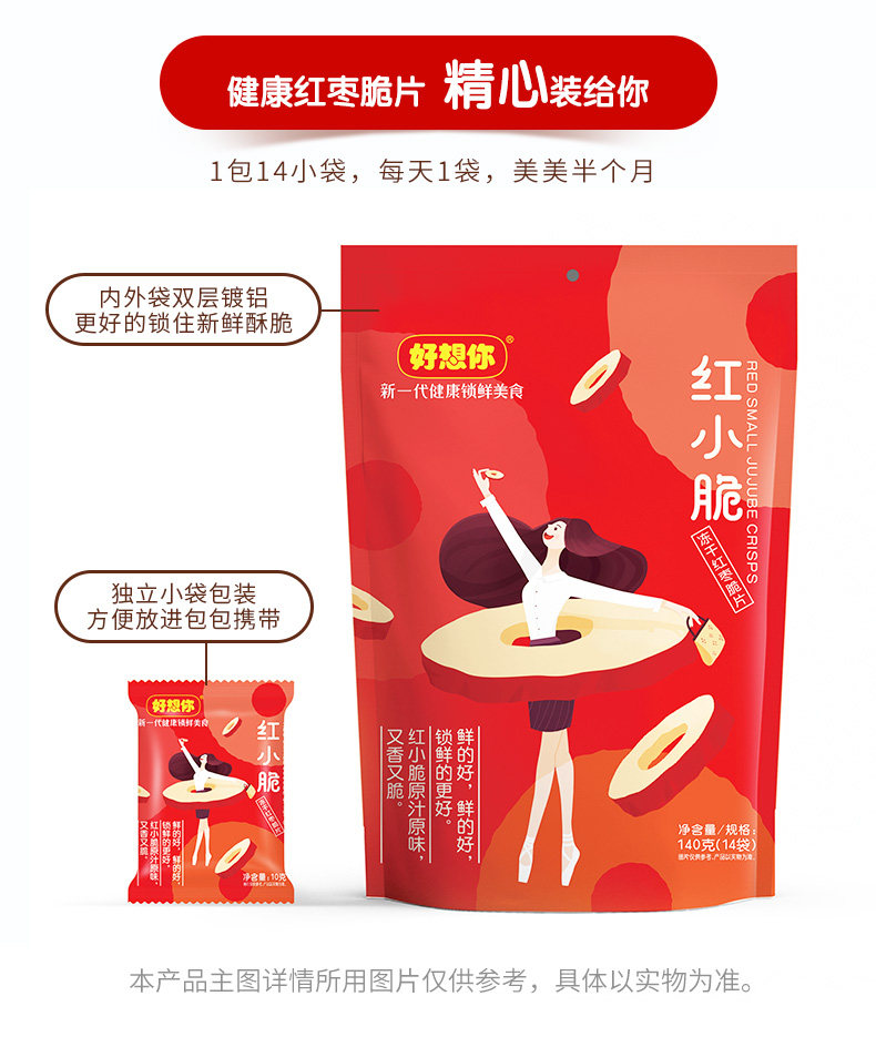 I miss you Red small crispy dried red dates 140g seedless no-wash ready-to-eat chips Specialty office leisure snacks dried fruits