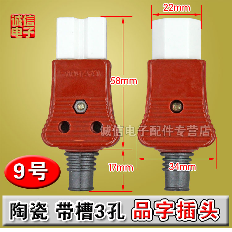 Electric Boiler Plug Source Wire Pint Porcelain Triple Plug Electric Rice Cooker Three Holes Plug Porcelain Plug Pure Copper Sheet Quality