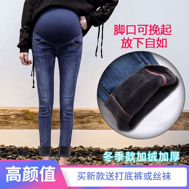 Pregnant women jeans spring and autumn thin belly pants Spring Summer small feet tide mother wear spring thin pants
