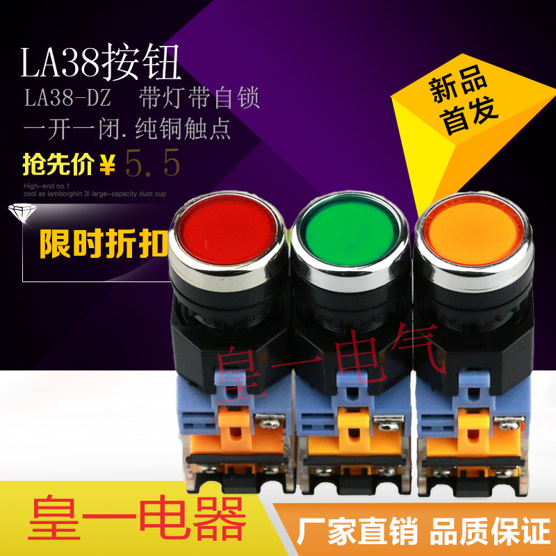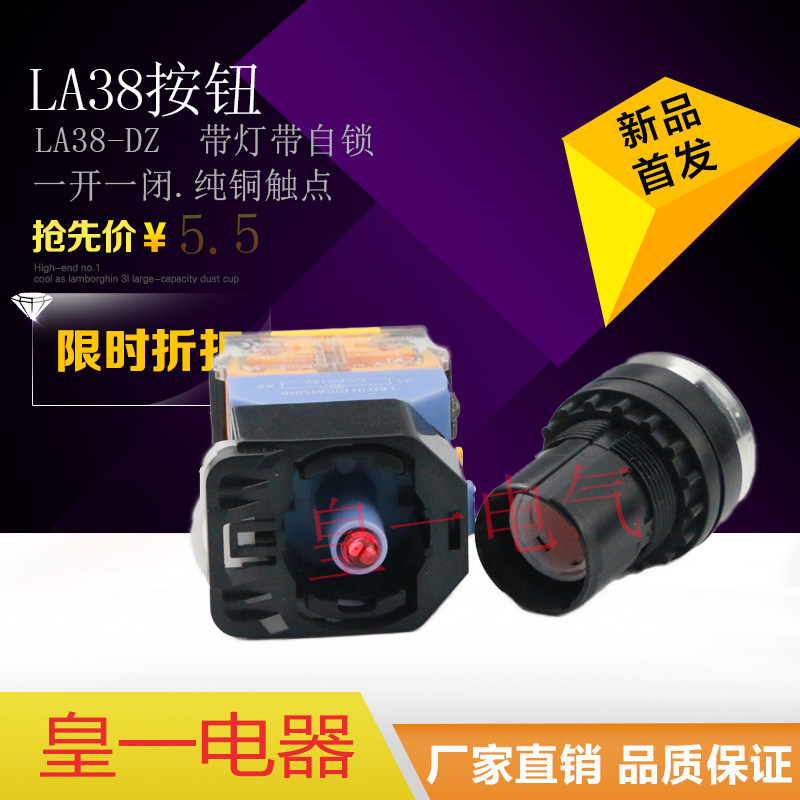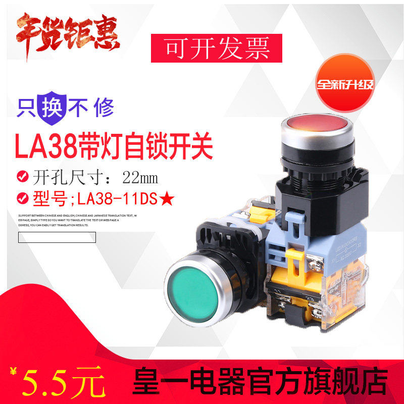Power switch LA38-11DS self-locking lighted button switch LA38-11DNZS 22mm220V 24V