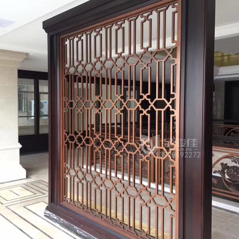 Stainless steel screen partition new Chinese metal porch living room titanium alloy light luxury Villa into the home hollow flower custom