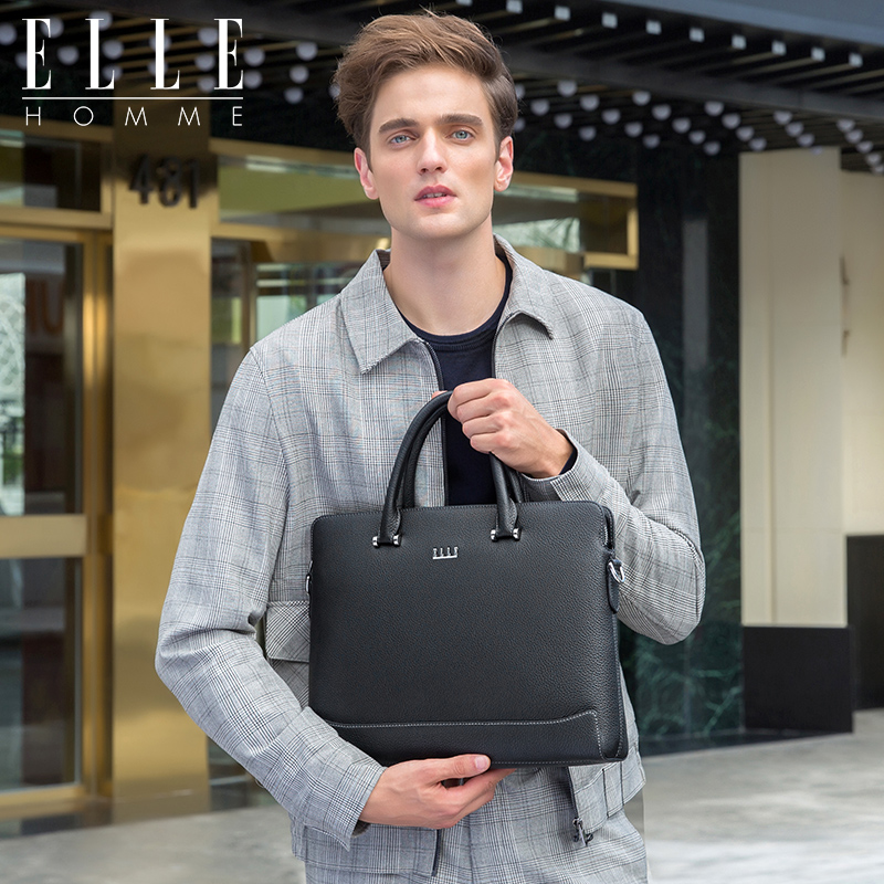 ELLE HOMME men's handbag briefcase briefcase business casual genuine leather cross section business package single shoulder bag official bag