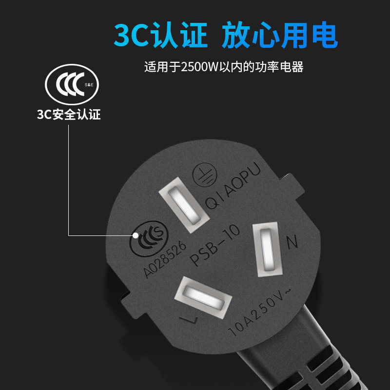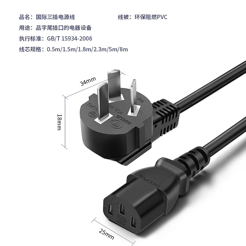 Qiaopu pure copper oxygen-free copper wire national standard inserted three holes 1 5 3 5 8 meters end computer rice cooker power cord
