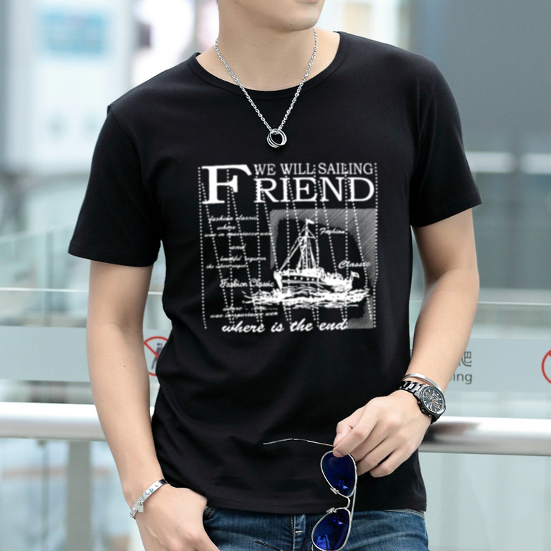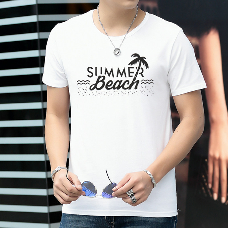 Summer men short sleeve T-shirt round collar pure color T-shirt undershirt Korean version half sleeve summer clothing blouse black and white tide men's clothing