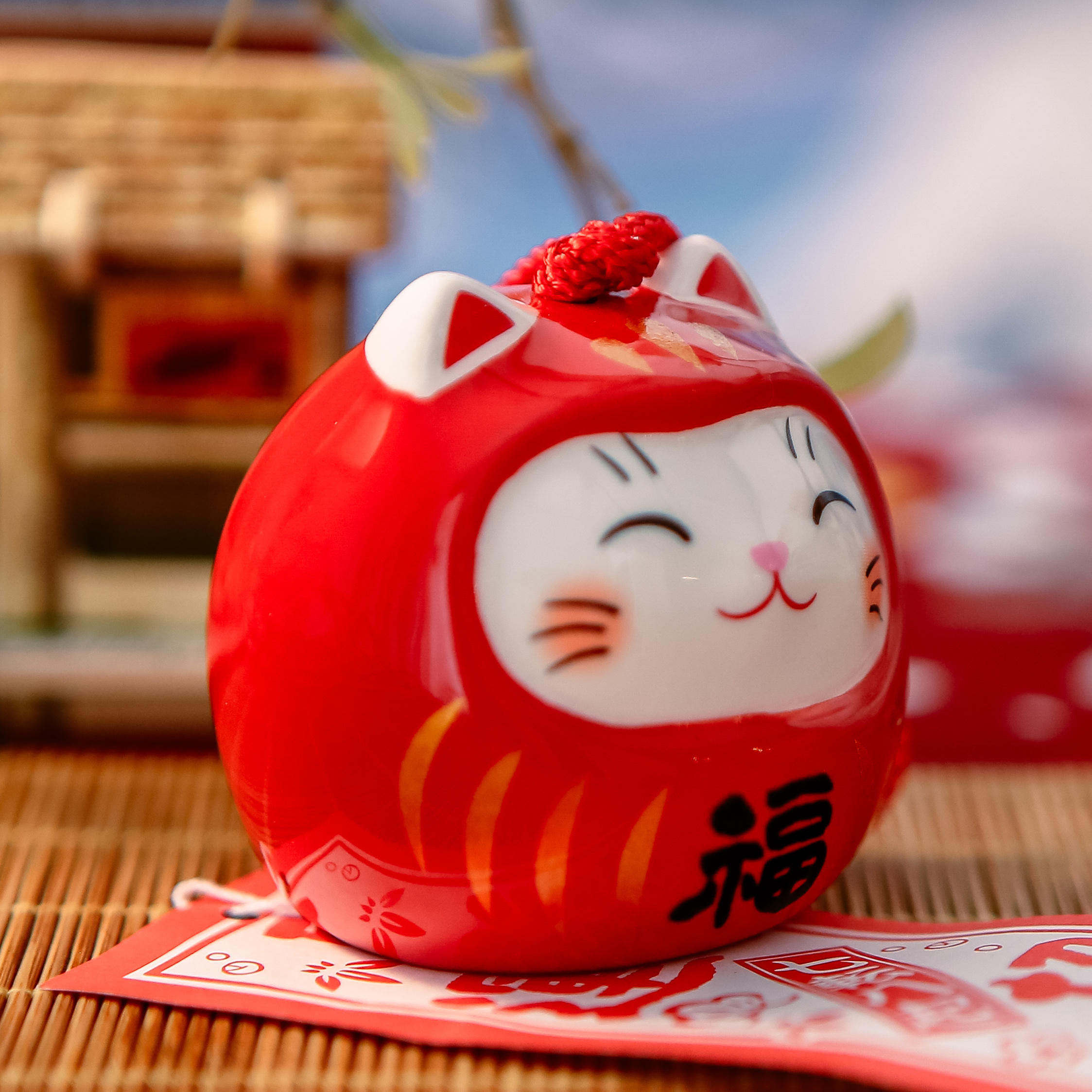 Japanese Pharmacist Kiln Damo Strokes of Cat Windbell Sun Style ceramic Kaiyun Gifts Balcony Hung on Vehicular Import