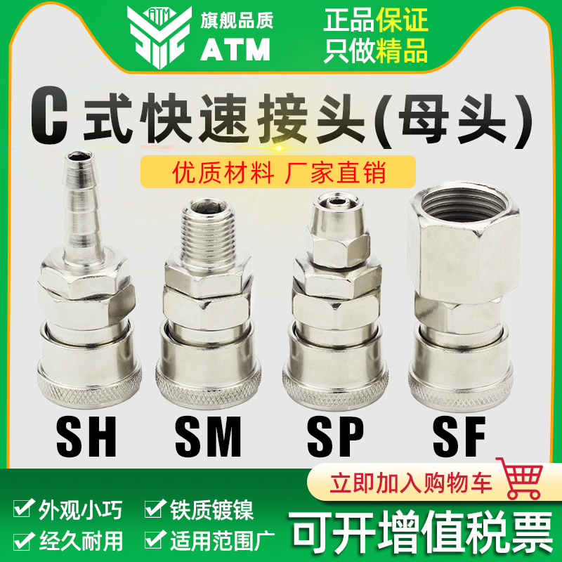 Pneumatic Tools Air Compressor Air Pump Fittings Self-Locking Quick Plug Tube C Type Quick Coupling Docking SM PP SP20H