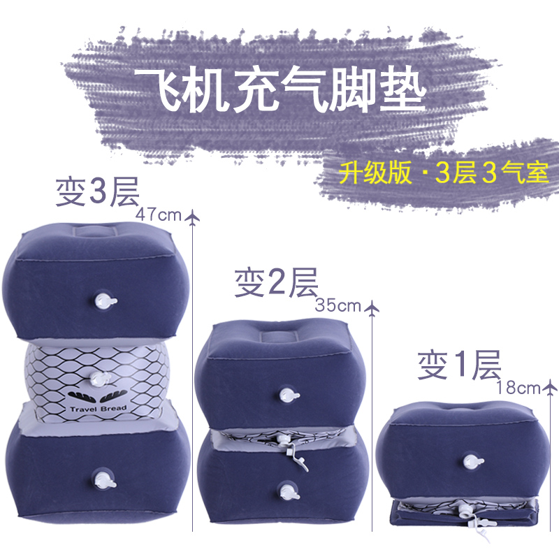 Adjustable height long-distance aircraft inflatable foot pad leg uplifting artifacts travel airplane pillow head and neck pillow car foot pedal