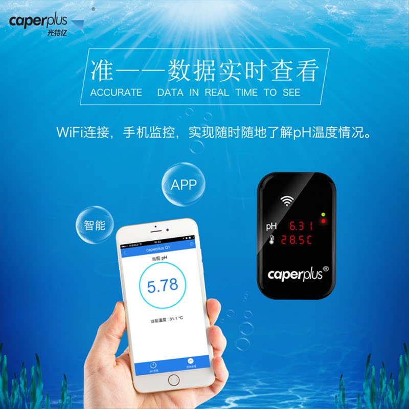 Guangteyi CaperPlus WIFI intelligent PH fish tank water quality temperature monitoring detector mobile phone remote alarm