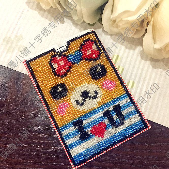 Cross stitch pearl embroidered printed bus card bank card bank card bag material bag kt009 small flower bear
